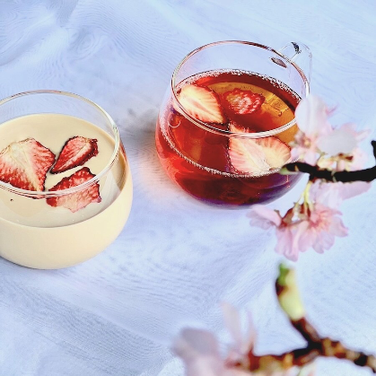 strawberry-scented flavored black tea is based on our Japanese black tea made at Yabukita, and has been created to have a sweet andgorgeous aroma. We also make a total of 11 types of flavored tea,including whiskey, red wine, and white peach.